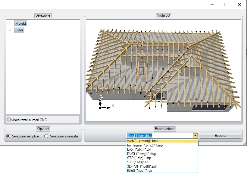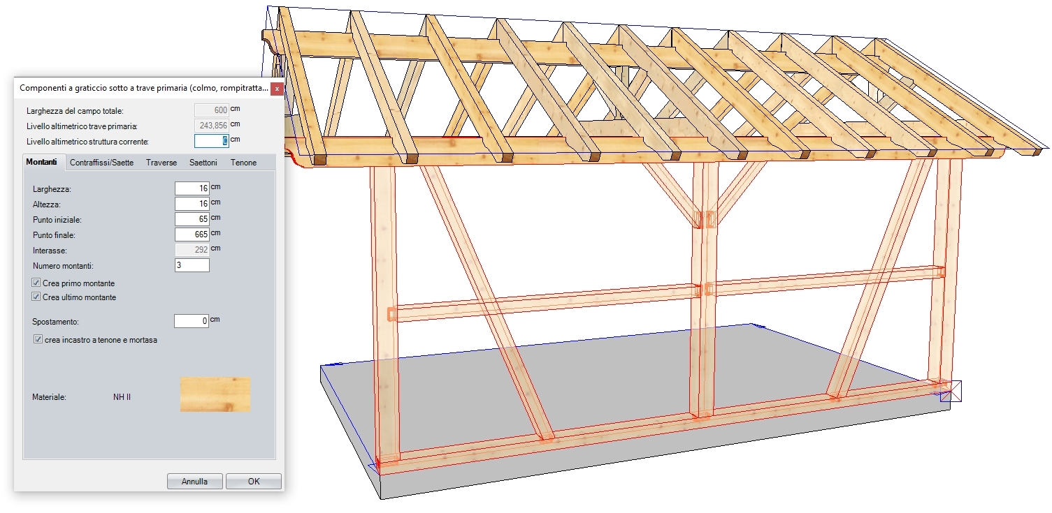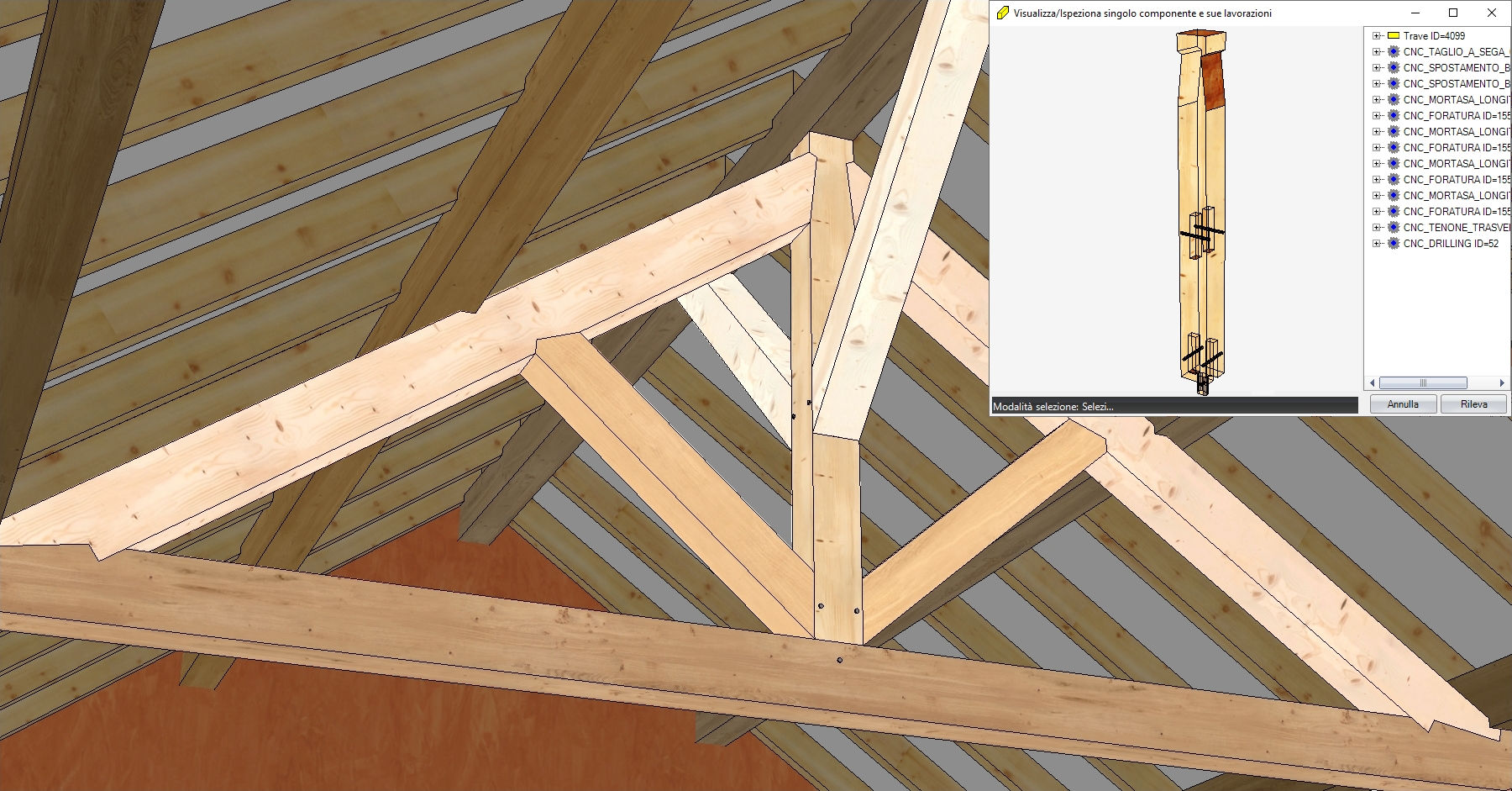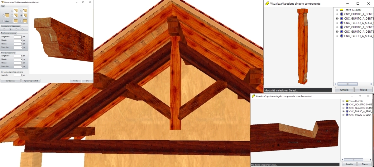 Podobnie, konstrukcje samonośne mogą być proste lub bardziej złożone – wystarczy ustawić odpowiednią liczbę Słup, Stężenie, Podwalina/Rygiel, Stężenie. Wszystko to odbywa się w dobrze zaprojektowanym środowisku pracy 3D, którego obsługa jest łatwa, ponieważ cieśla nie ma czasu do stracenia i chce być gotowy do pracy od samego początku, uzyskując rysunki techniczne, szacunki i automatyczne listy elementów drewnianych. W rzeczywistości narzędzia robocze LigniKon są uzupełnione interaktywnymi diagramami, które pojawiają się automatycznie w zależności od kontekstu i odzwierciedlają klasyczną strukturę drewnianych budynków oraz sposób myślenia i pracy cieśli, którzy muszą je tworzyć.