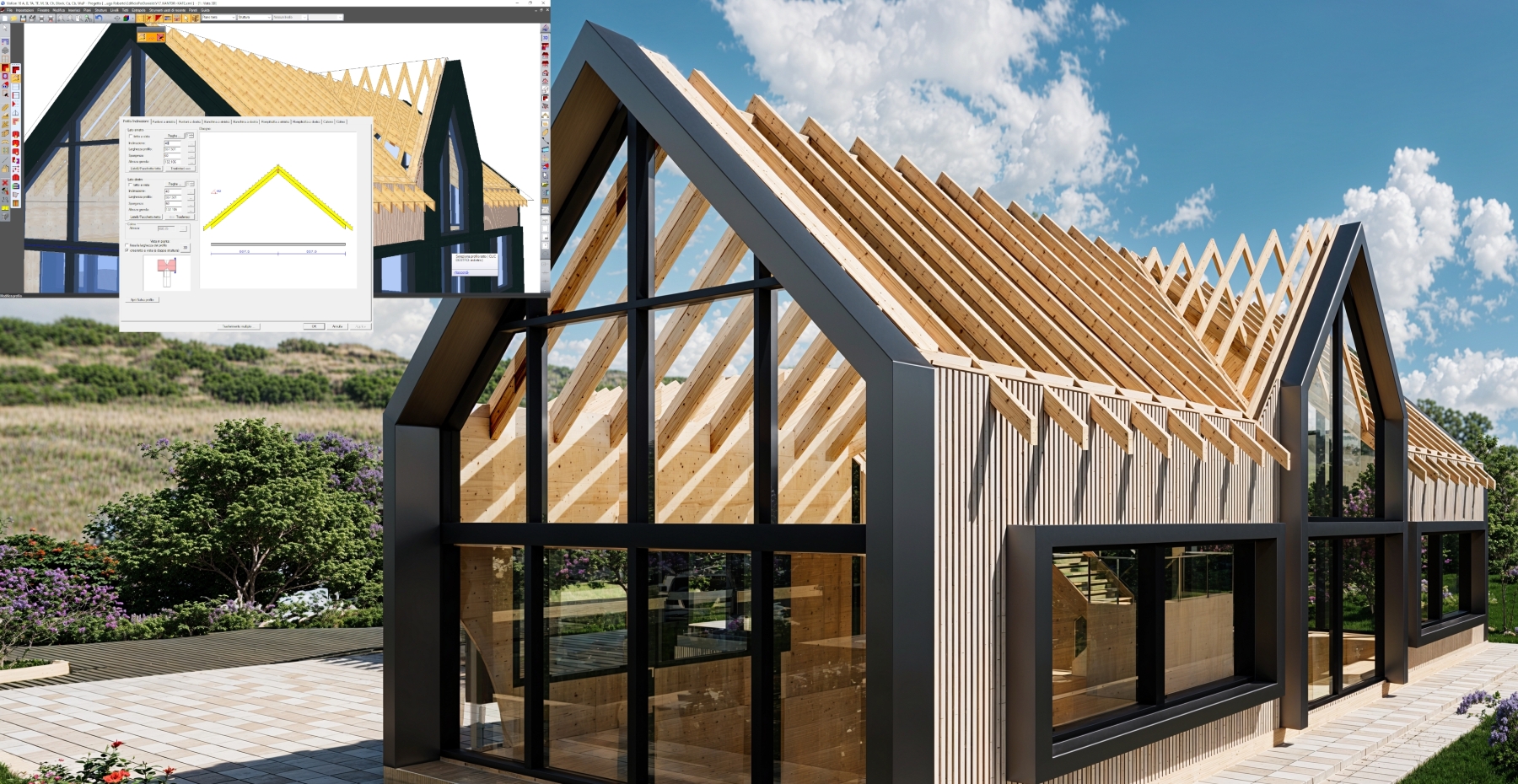 VisKon to idealne rozwiązanie 3D BIM i CAD/CAM dla budownictwa drewnianego, łatwe w obsłudze i nauce. Dzięki niemu możesz rysować naturalnie i od razu zacząć produkować swoje konstrukcje, automatycznie uzyskując wszystkie rysunki techniczne i/lub narzędzia CNC do cięcia.