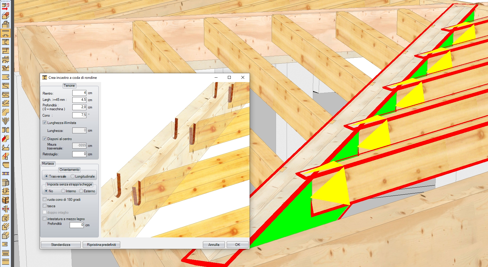 Między innymi dopracowaliśmy procesy mechaniczne (połączenia na jaskółczy ogon, czopy-czopy, półdrewno, różnego rodzaju nagłówki, rzeźbienia, itp.) biorąc w jak największym stopniu pod uwagę sposób działania większości maszyn sterowanych numerycznie (3/4/5/6 osi) oraz manualnych, aby uniknąć nieprzyjemnych niespodzianek podczas obróbki. Wprowadziliśmy zatem ograniczenia informatyczne, które pojawiają się w odpowiednim momencie. Na przykład, ta sama blokada, która działa w większości przypadków, może nie być dozwolona w innych okolicznościach, ponieważ maszyna w tej konkretnej sytuacji nie jest w stanie jej wykonać!