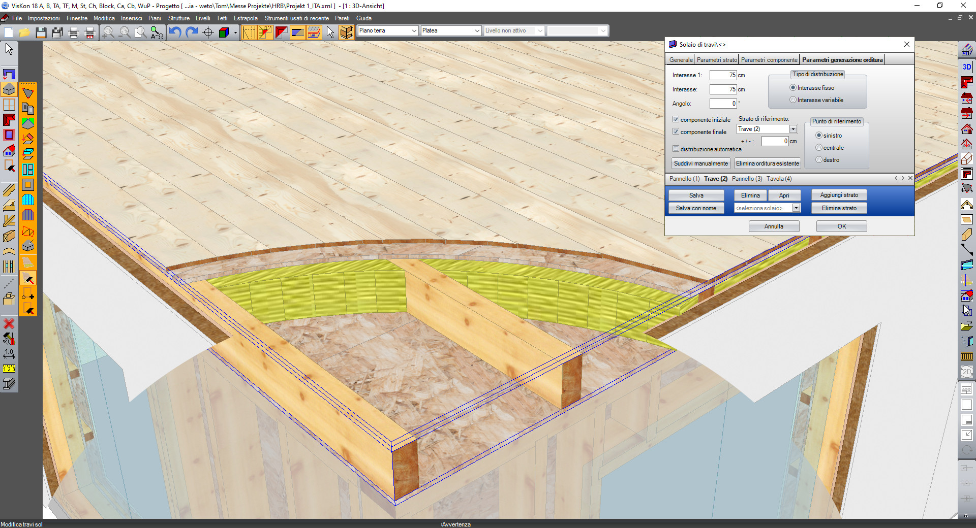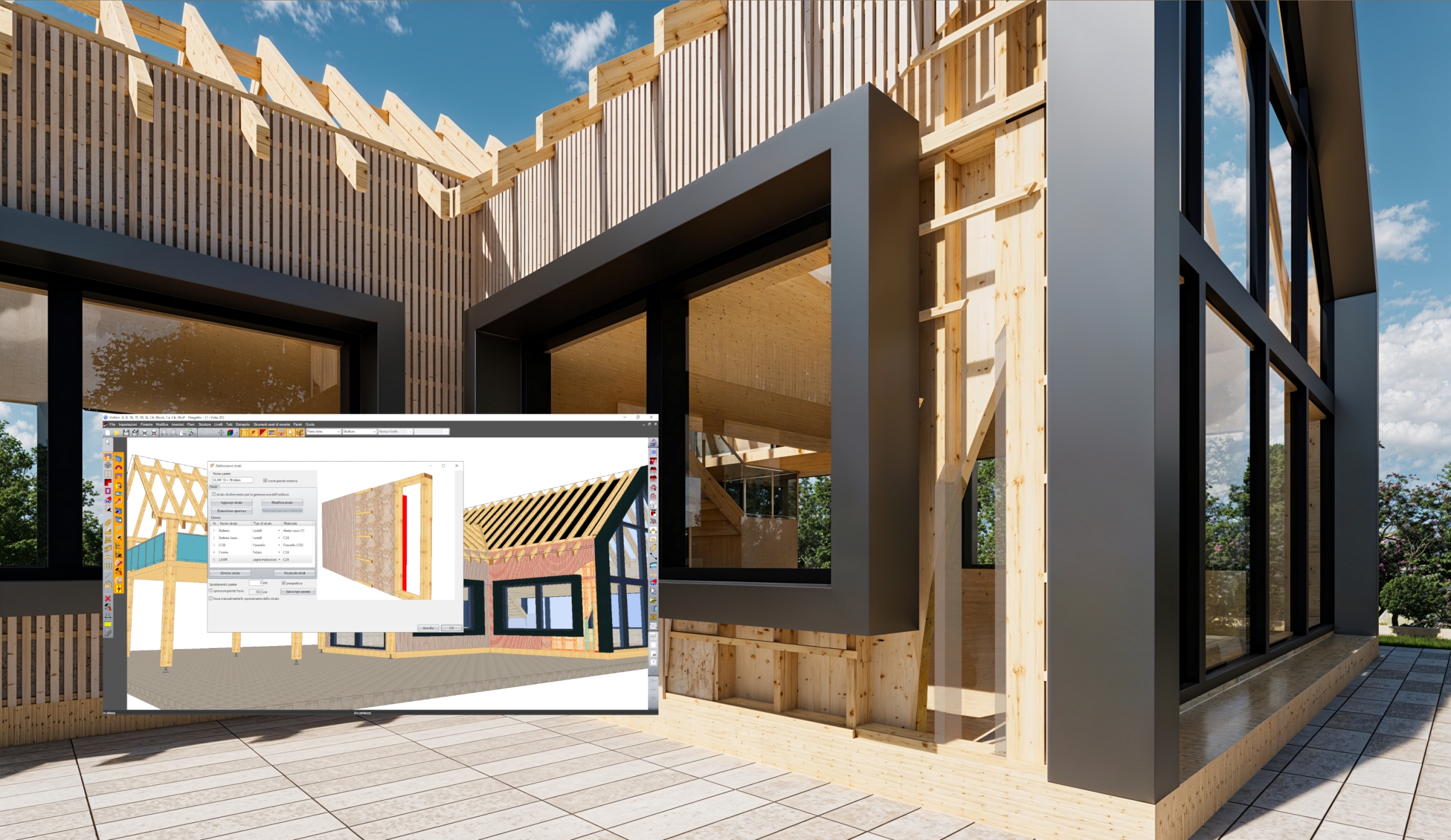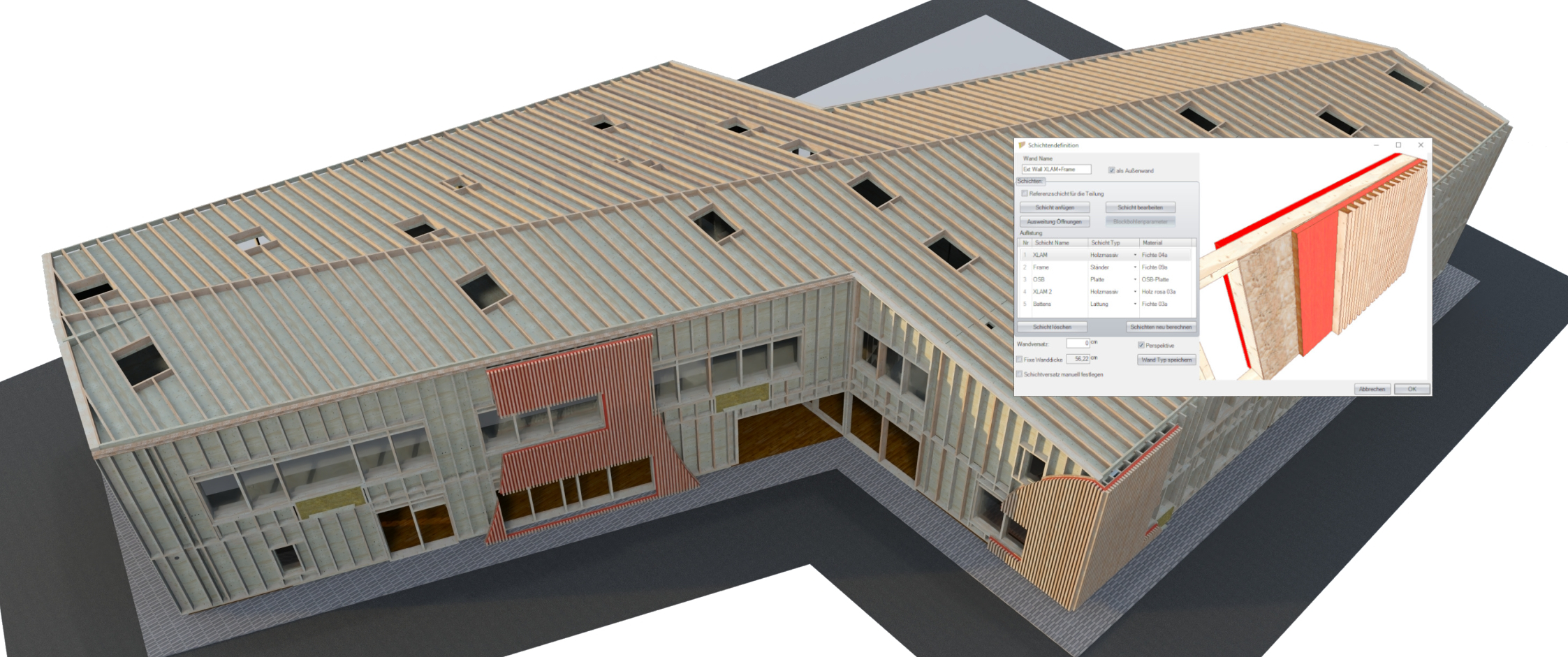 Prefabrykacja ścian: każda warstwa jest parametrycznie konfigurowalna (w przykładzie ściana mieszana XLAM-Frame)
